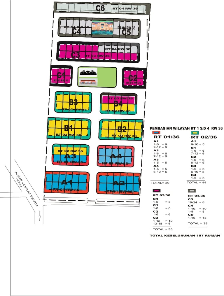 • RT 04/RW 36: Blok C3 (sebagian), C4, C5, C6 (total 39 rumah)